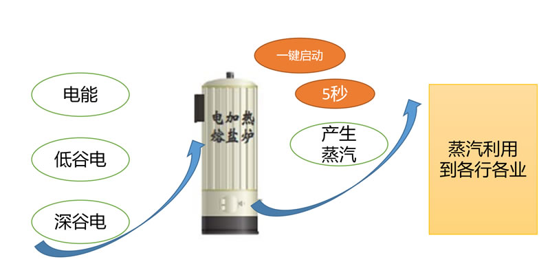环川节能储能式蒸汽发生设备这一跨时代的产品,在使用熔盐相变技术持续反复加热蓄能,充分利用低谷电,在削峰填谷缓解电网压力的同时,为客户提供安全环保可靠、极大节约运行成本的储能式蒸汽发生设备。